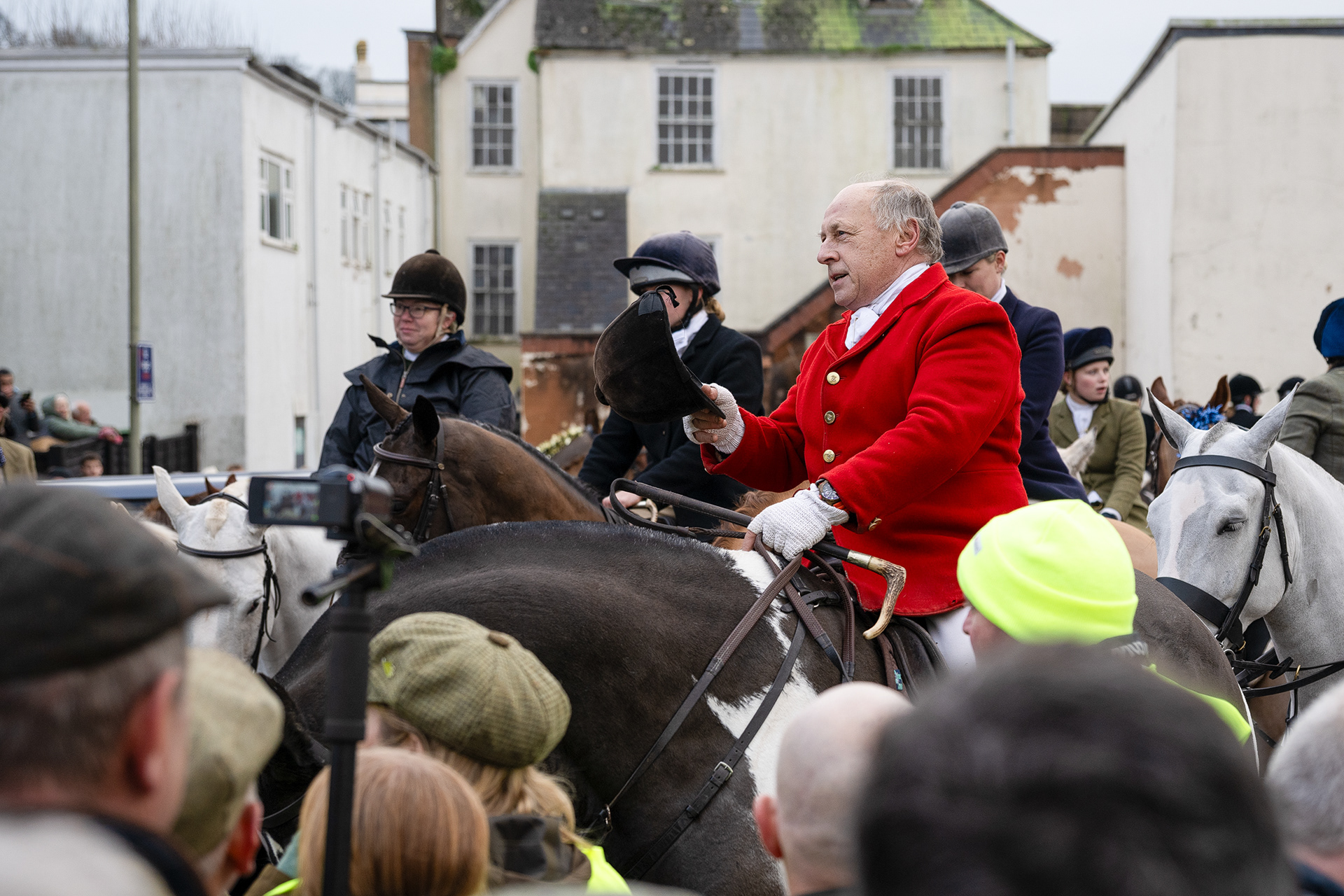 The annual Boxing Day meeting of the Tiverton Foxhounds at the Tiverton Pannier Market.